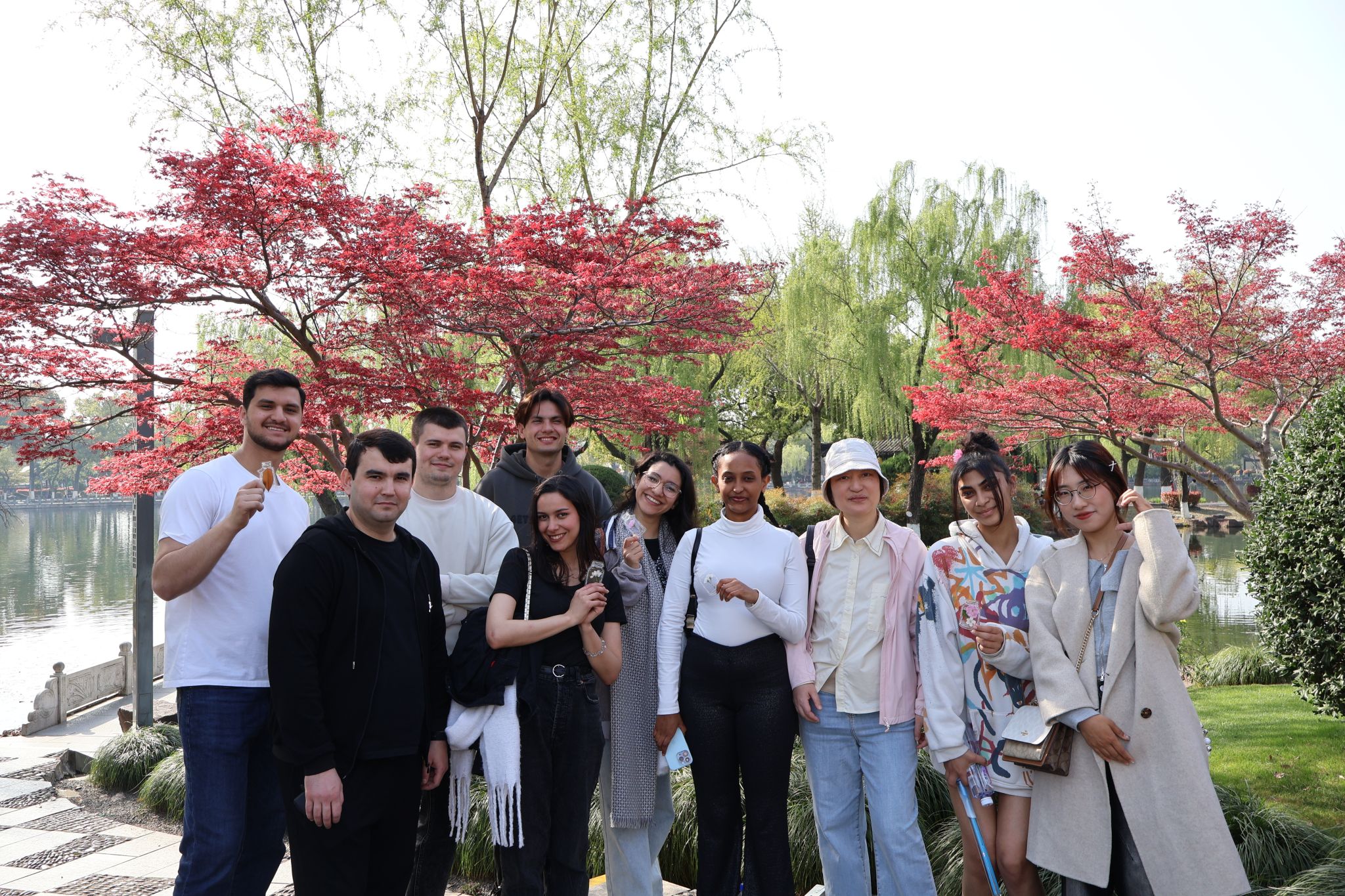 组织来自九个国家的十余名留学生前往宁波月湖公园开展研学活动。本次活动以“宁波文化体验”为主题,通过实地探访、老师讲解与互动体验,帮助留学生在历史与人文交融的场景中感悟中华文化的深厚底蕴。
